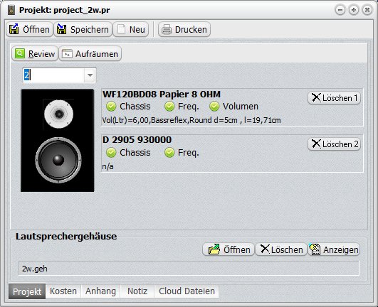 7. Synchronisierung (Lautsprecher, Bauteile, Frequenzweiche, Gehäuse, Projekt) über mehrere PC’s /Team (kostenloser Cloud-Service)