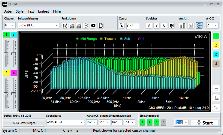 1. Frequenzspektren in Echtzeit erfassen: Mit 4 Anzeigekanälen und für bis zu 10 Mikrofone