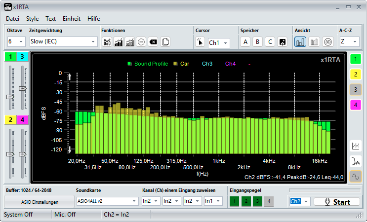 2. Messung mit Rosa Rauschen im Fahrzeug (Balken Gelb)
