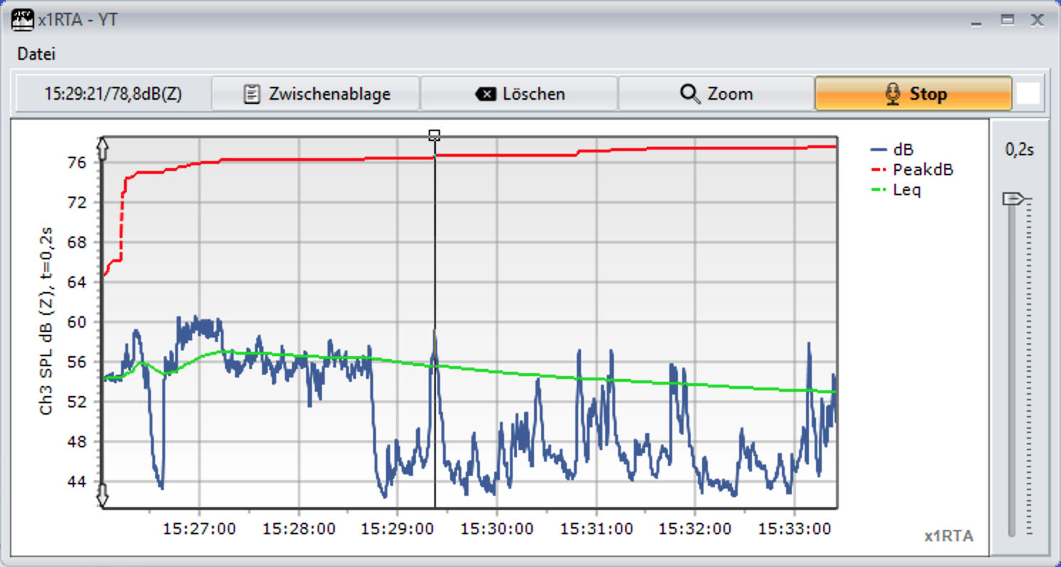 2. Lärmpegel über die Zeit messen: Im Handumdrehen aussagefähige Messkurven erstellen. Auch mit A- oder C-Gewichtung.