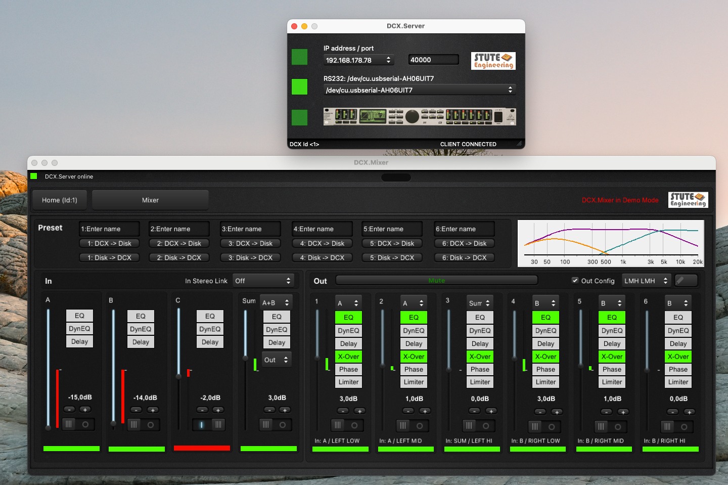 Good to know: You can use DCX.Server for MS-Windows with a Linux PC in combination with free WineHQ extension, like Linux Mint 21 with WineHQ 8. So you can control comfortable your DCX2496 from your tablet PC or cell phone via WiFi.