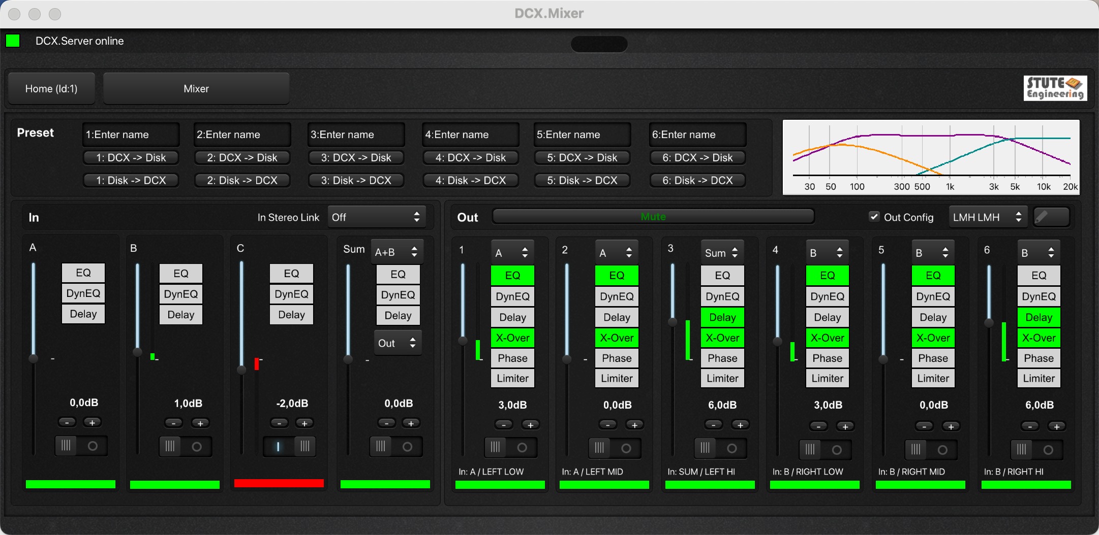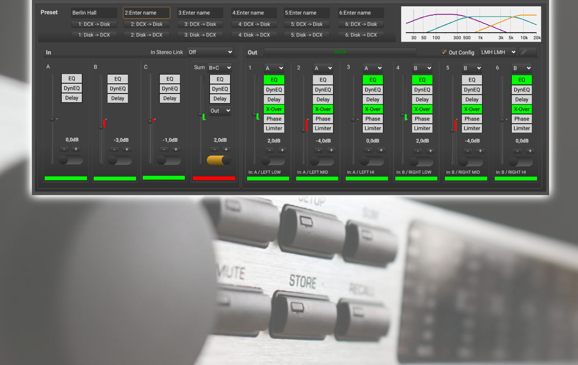 New in DCX.Mixer: Transfer changes simultaneously to multiple DCX2496. Plus numerous improvements. Available now! Free DEMO (MS-Windows / macOS). Update free of charge from previous versions 2.x. DCX.Mixer for macOS (Ver 2.5), MS-Windows (Ver 2.5) and Android (App Store).