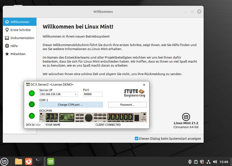 Haben Sie es gewusst? Sie können DCX.Server für MS-Windows mit einem Linux-PC in Kombination mit der kostenlosen WineHQ-Erweiterung verwenden, wie z.B. Linux Mint 21 mit WineHQ 8. So können Sie Ihre DCX2496 bequem von Ihrem Tablet-PC oder Handy aus per WLAN steuern.