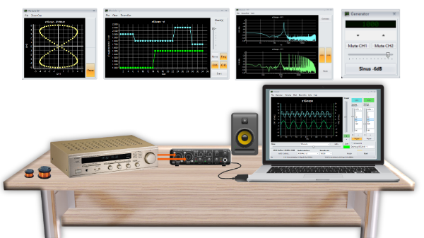 With a standard USB audio interface (from around EUR 70), you can transform your laptop or PC into a professional measuring device and signal generator in no time at all.